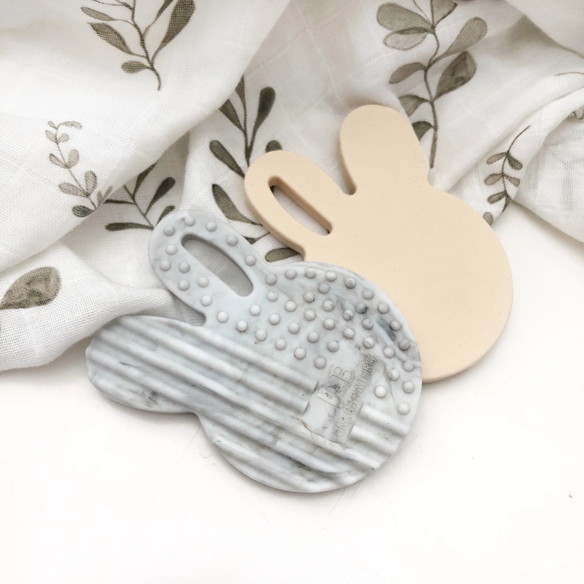 This handy Bunny teether features two textures and long ears that gently massage gums. Sized just right for tiny hands to grip and mouths to chew, its seamless one-piece design keeps moisture out. Bonus: chill it in the fridge or freezer for a soothing, cool treat!