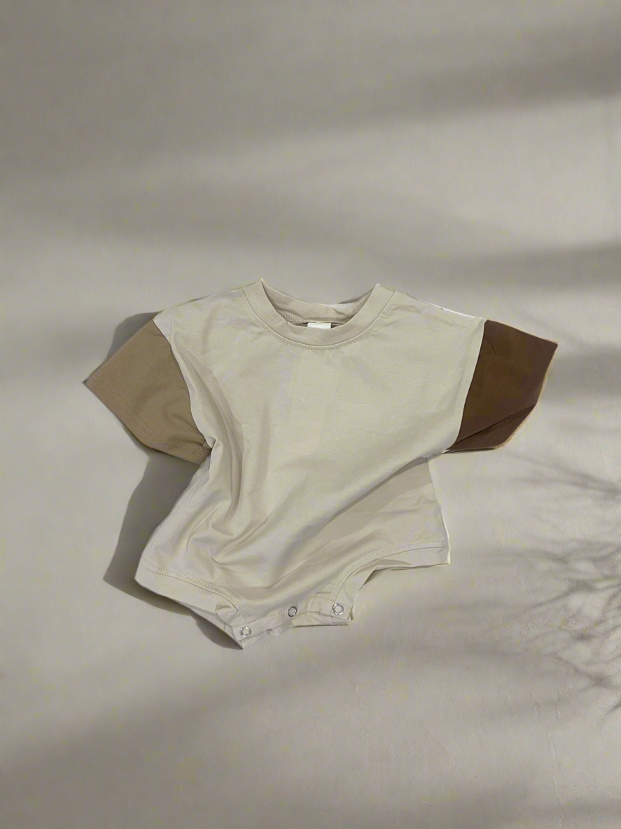 Get ready for some serious fun in this 3 Tone Neutral Romper! Rock the playful oversized T-shirt fit in a super soft cotton blend. Perfect for any summer adventure.
