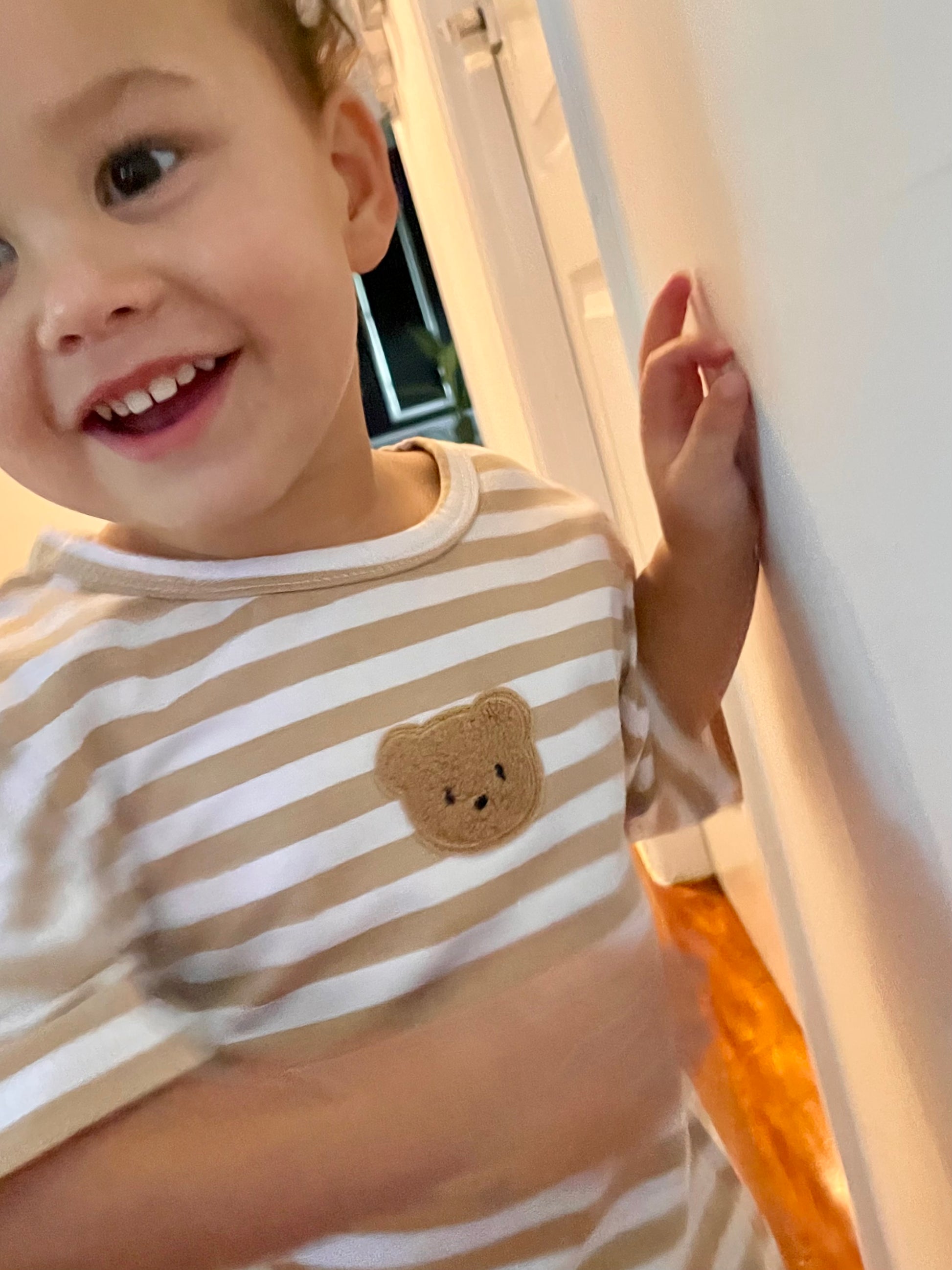 You'll have the perfect outfit for any occasion with this beary cute oversized boxy tee. Made with beautiful soft and stretchy fabric in a coffee shade, it's perfect for little boys and girls. Add this playful and versatile tee to your little ones collection today!